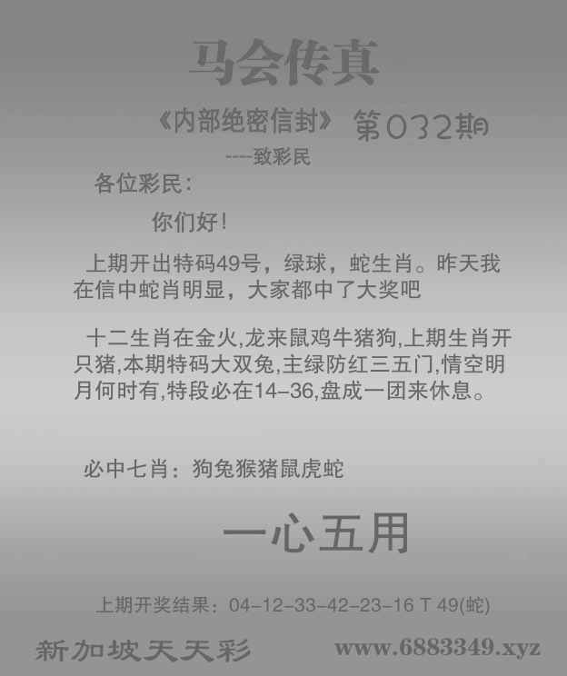| 031期: ⑥肖 | 龙鼠鸡牛虎羊 | 蛇49中 |