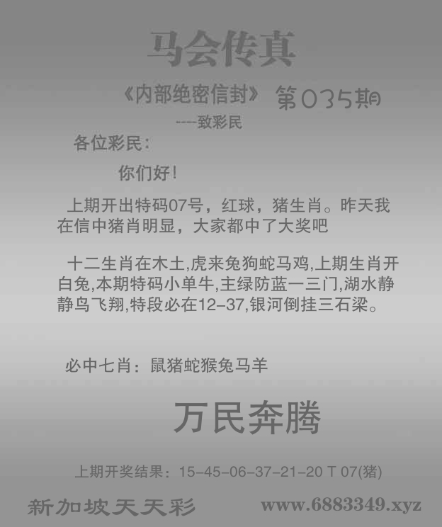 | 035期: ⑥肖 | 鸡猴狗马兔鼠 | 马36中 |