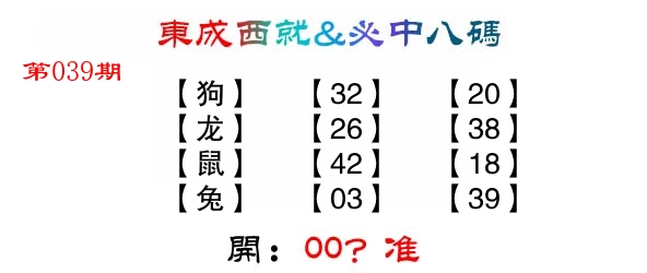 | 039期: ⑧肖 | 鸡牛马龙猪蛇虎猴 | ??中 |