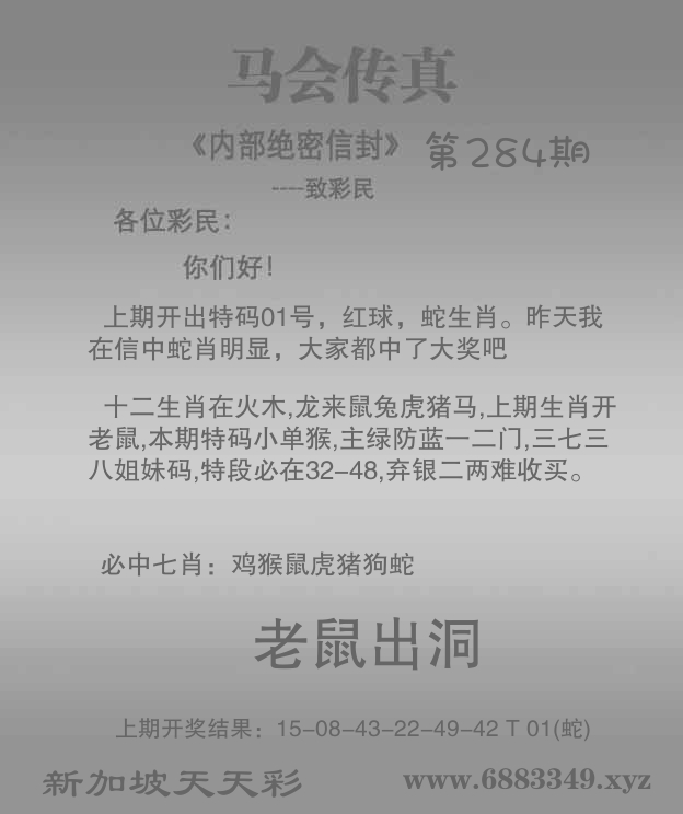 283期: ④肖 | 兔虎鼠猪 | 蛇1中 |