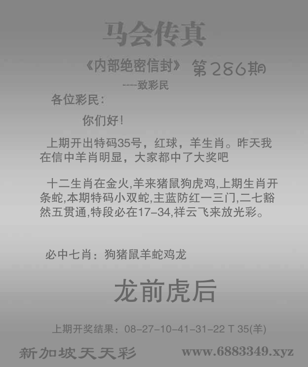 290期: ⑤肖 | 鼠虎龙狗鸡 | 羊35中 |