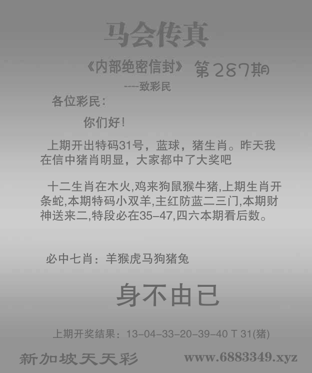 286期: ⑦肖 | 龙兔猴虎狗鼠蛇 | 猪31中 |