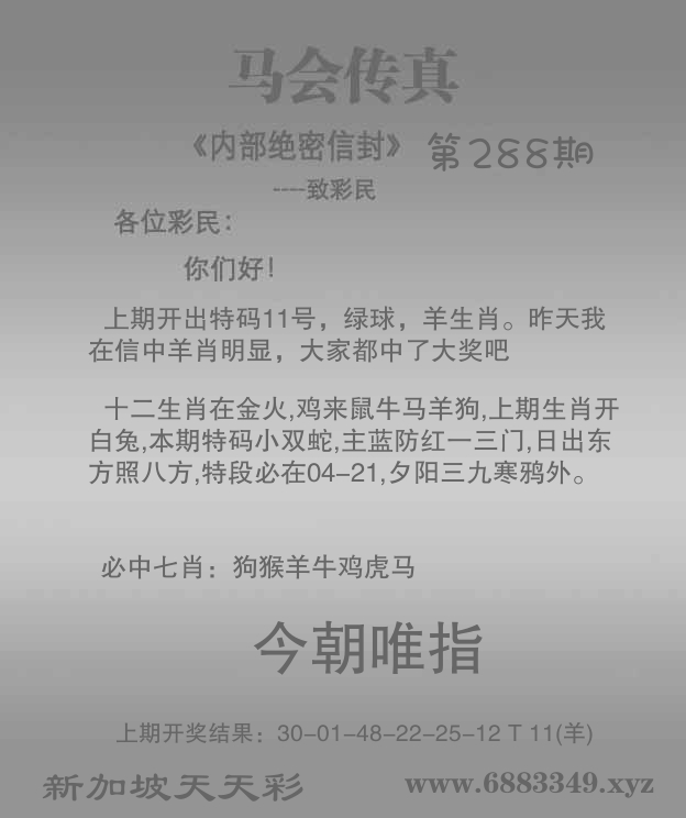 290期: ⑦肖 | 鼠虎龙狗鸡马猪 | 羊35中 |