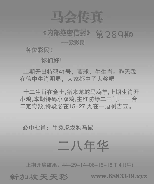 288期: ⑨肖 | 猴狗马猪蛇羊龙兔虎 | 牛41中 |