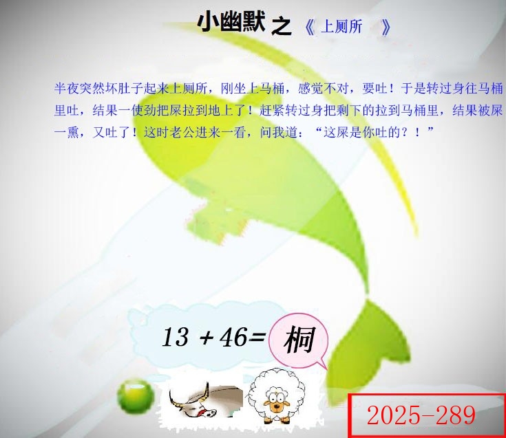 285期: ⑤肖 | 牛兔马蛇猪 | 羊35中 |