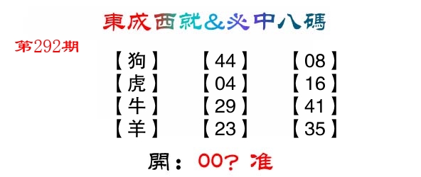 292期: ⑧肖 | 鼠狗猪羊猴虎龙牛 | ??中 |