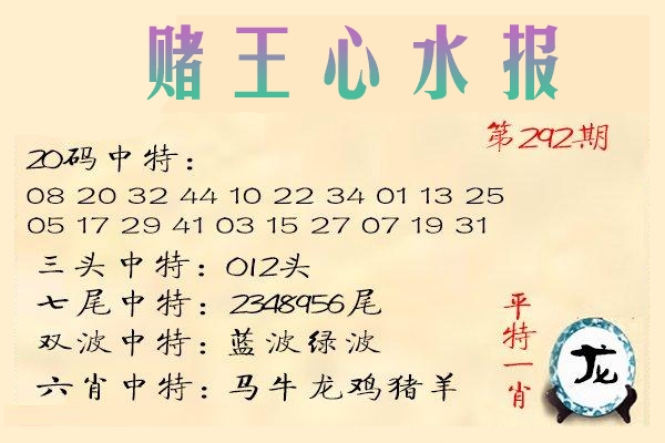 292期:公式一肖 | 292期:公式一波 | 292期:公式单双 |
