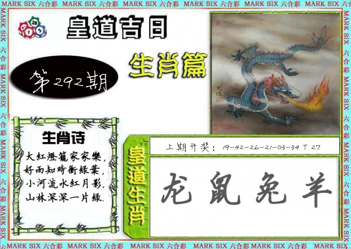 292期: ⑥肖 | 鼠狗猪羊猴虎 | ??中 |